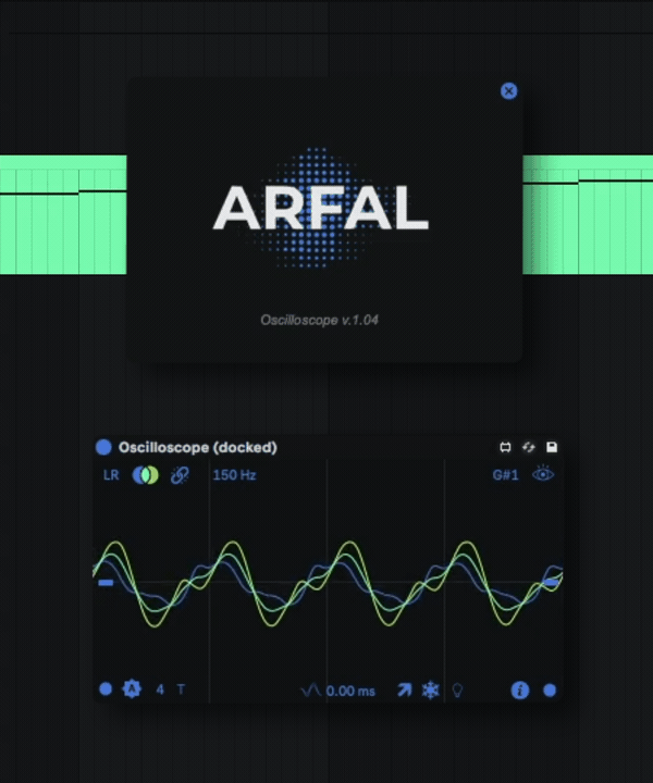 "Oscilloscope (docked)" has been initially designed to act like a traditional oscilloscope with the addition of a filter to stabilise the visualization, and more important synchronised on a periodical basis by detecting the incoming pitch (C2 or G2 will display the same number of periods). It was made to observe tonal content at first (basses, synths).